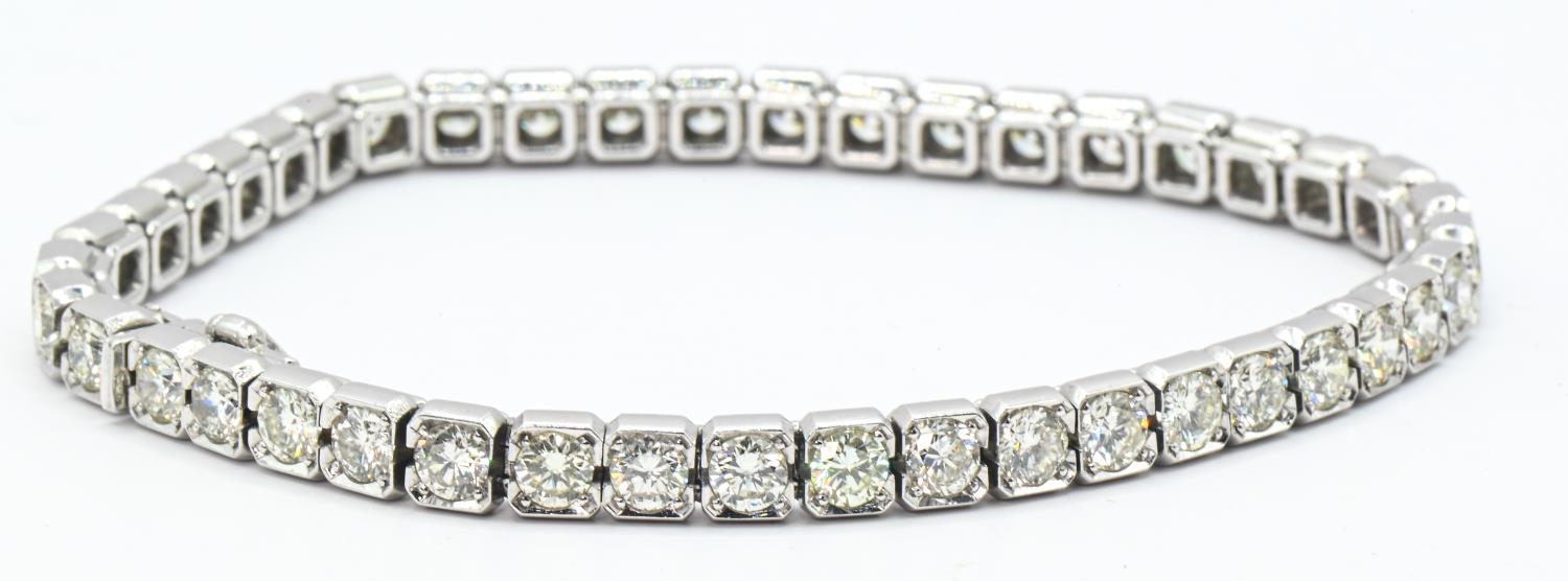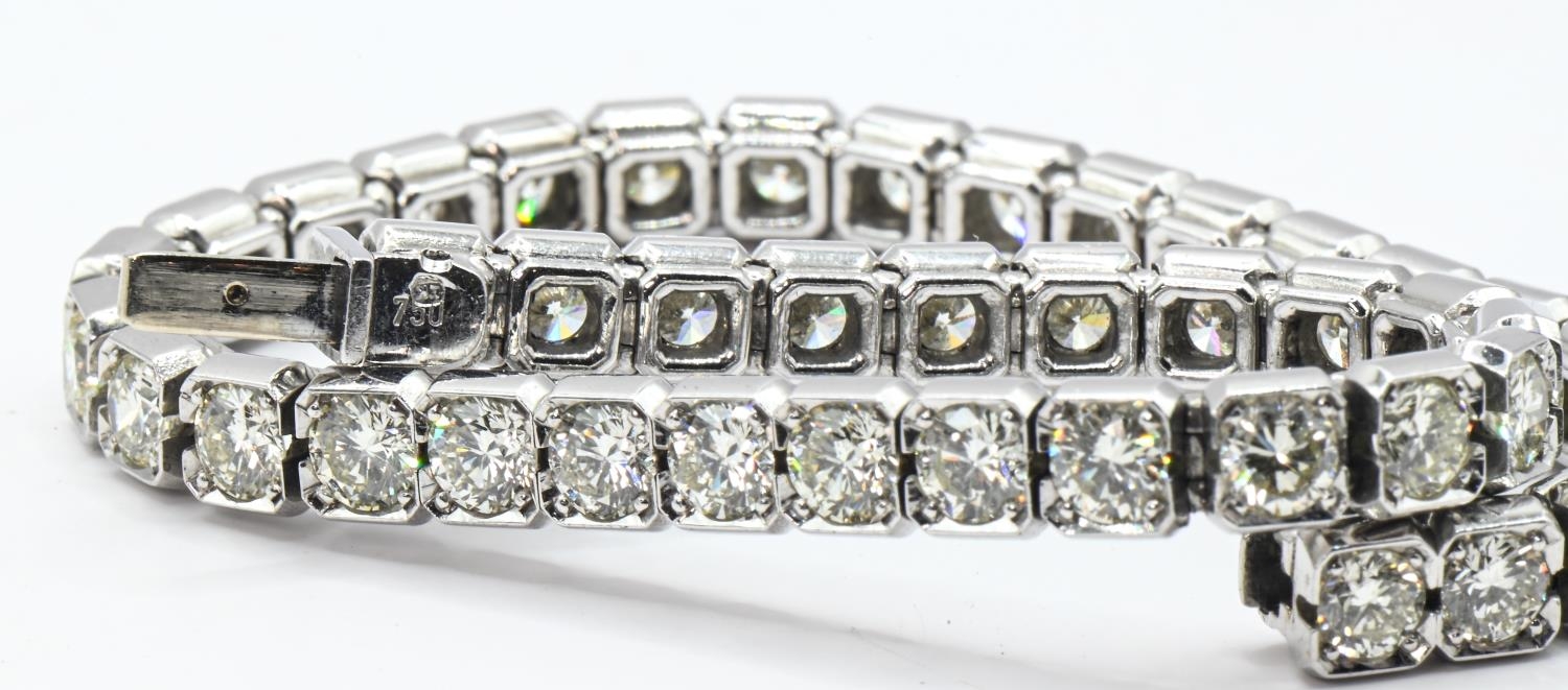 Diamond line bracelet, the diamonds together weighing approximately 10.00 carats, stamped 750 EK, length 195mm, gross weight 33.06 grams