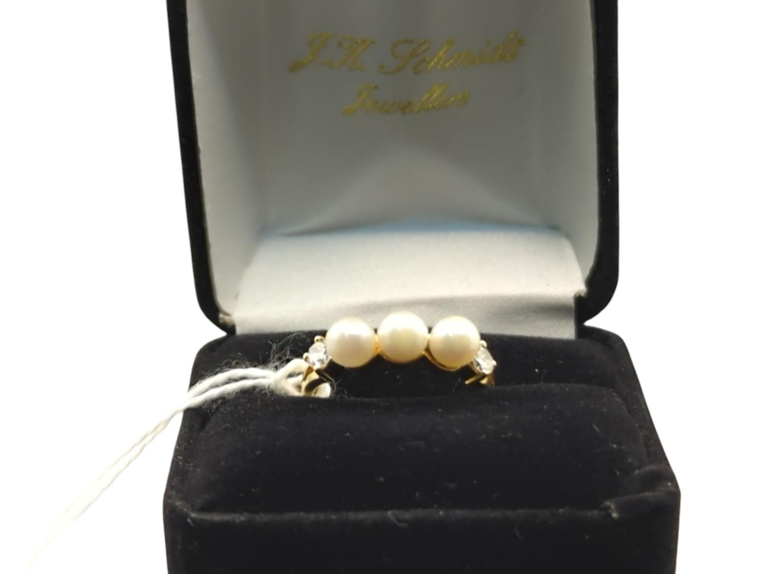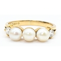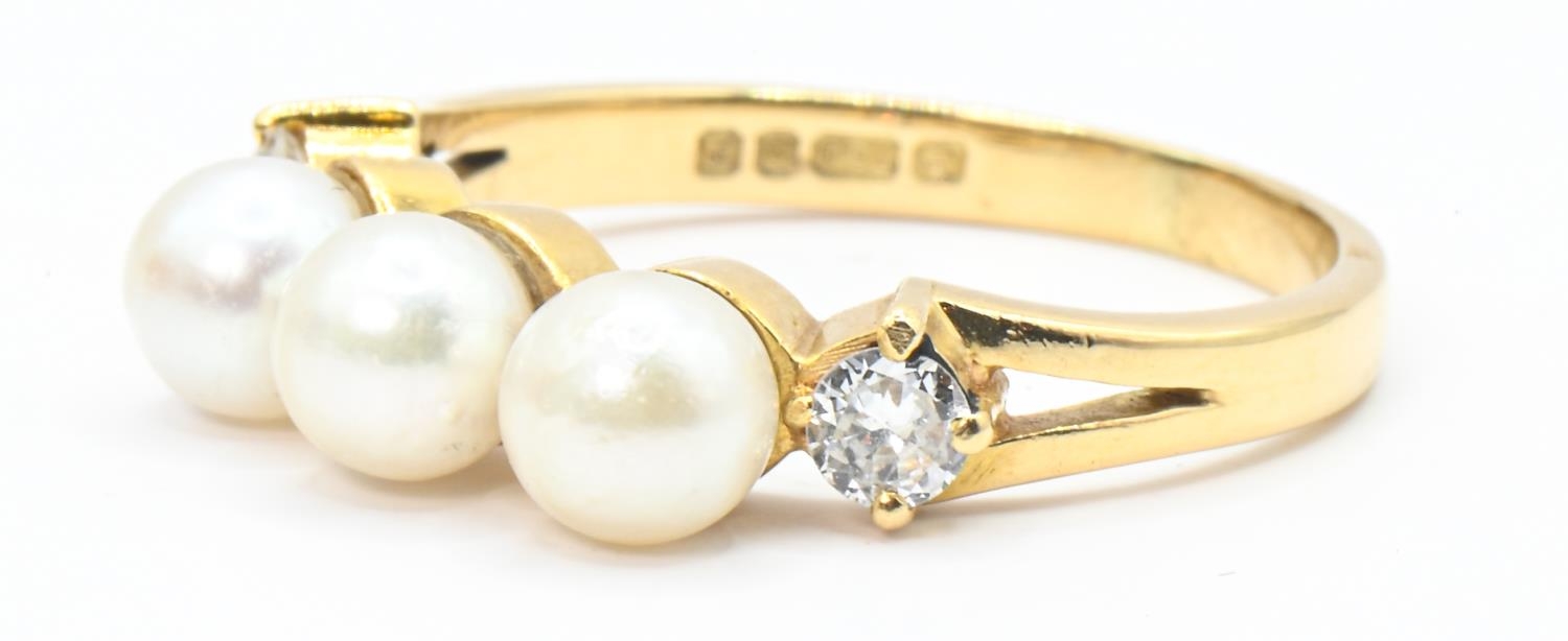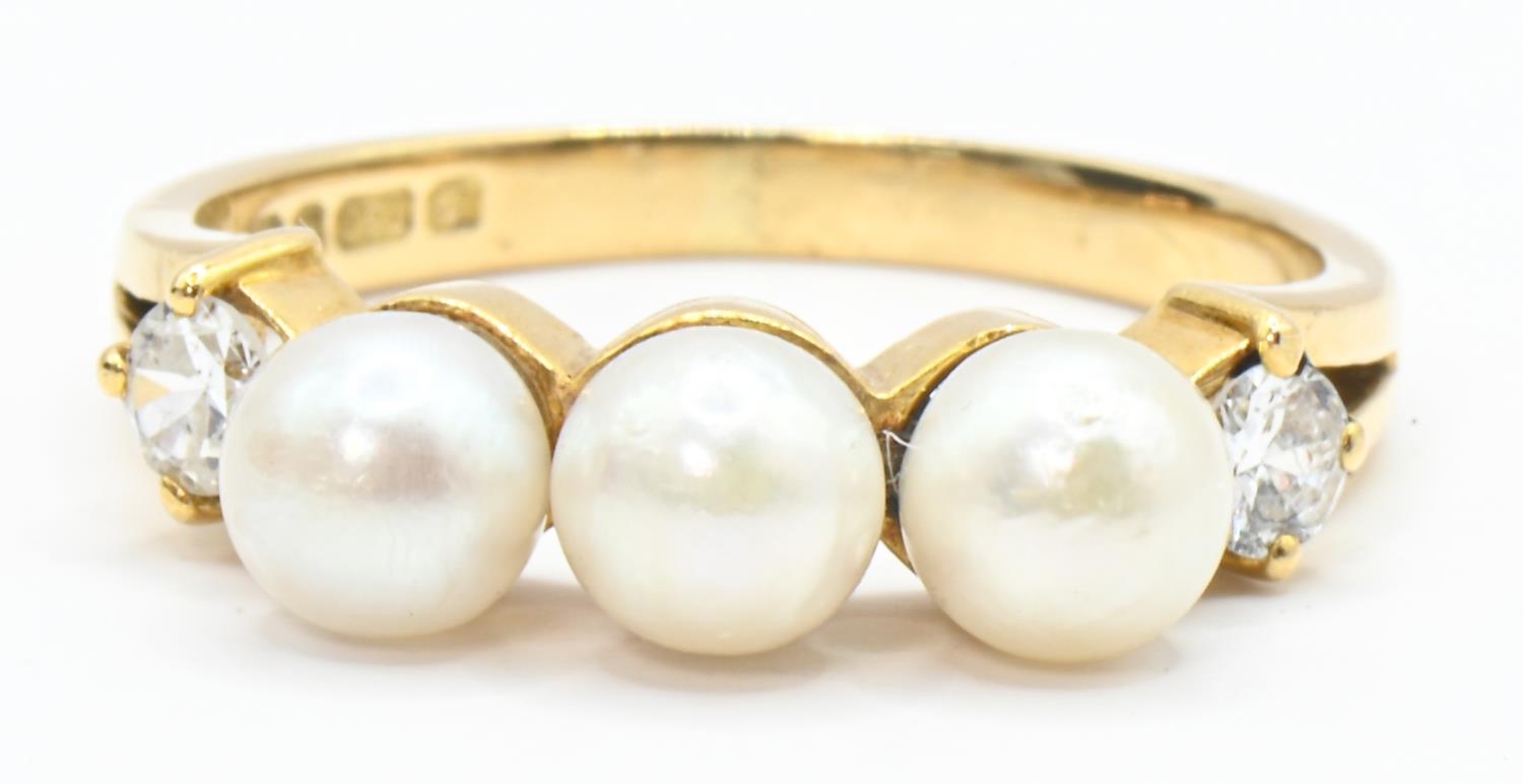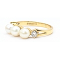 18ct gold, pearl and diamond ring, hallmarked, size N1/2, gross weight 3.63 grams