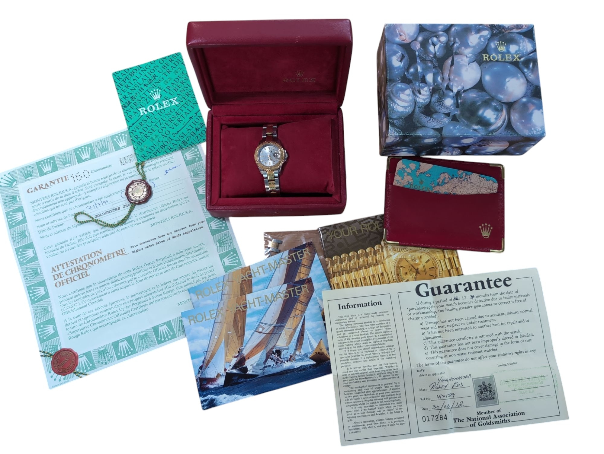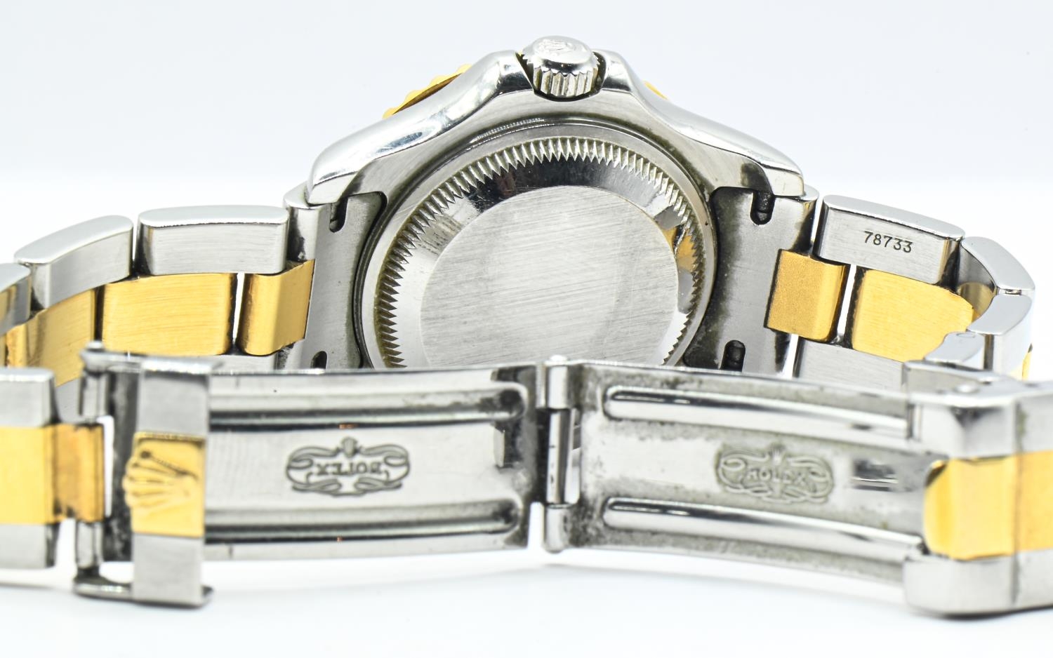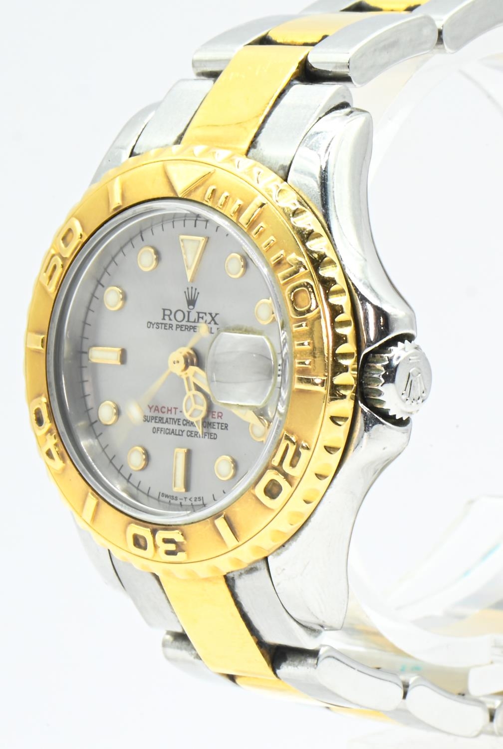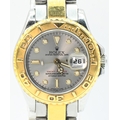 Rolex Yacht-Master ladies 18ct gold and stainless steel wristwatch with date and bracelet, circa 1999, ref. 69623, silvered dial, case including crown 30mm, accompanied by Rolex guarantee, four booklets, calendar, card holder, swing tag, additional link, presentation box and outer box.