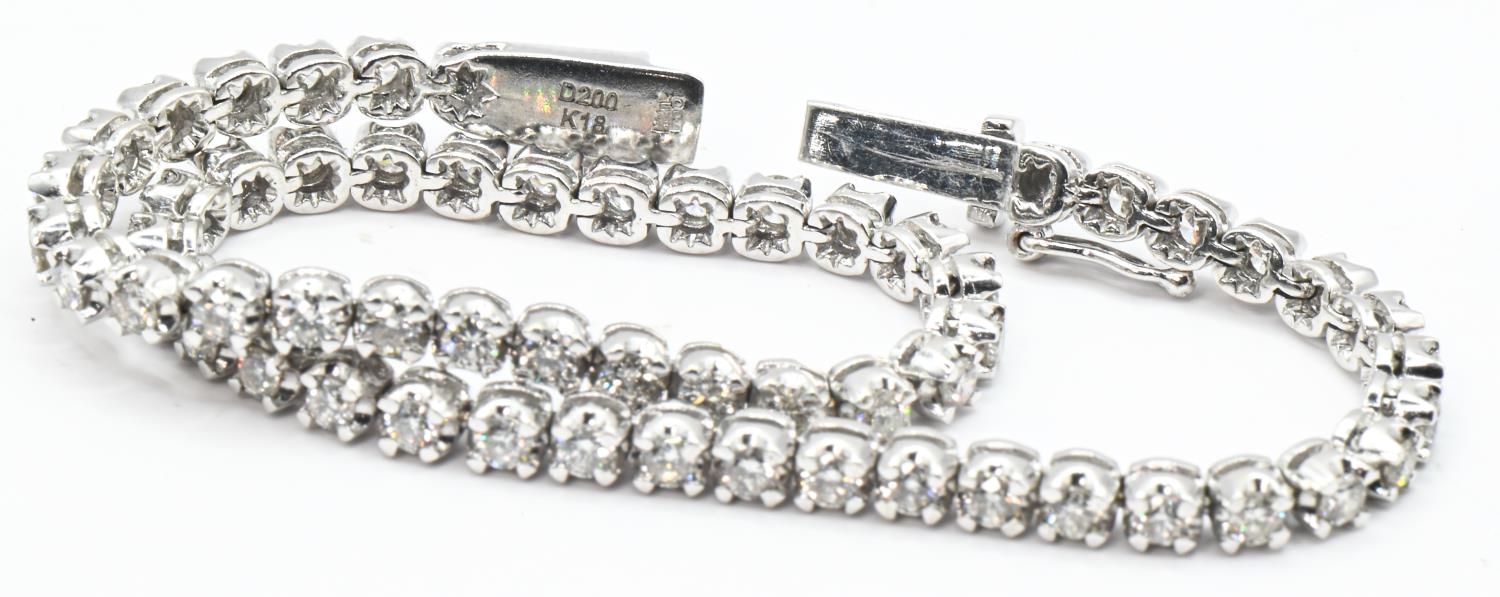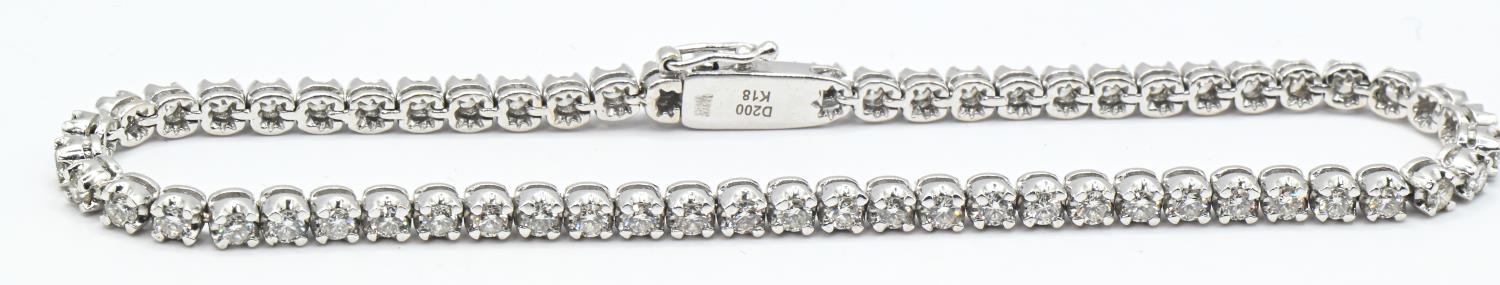 18ct white gold and diamond line bracelet, hallmarked, the diamonds together stated to weigh 2.00 carats, length 180mm, gross weight 9.93 grams