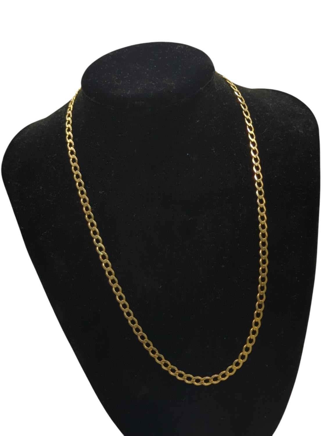 9ct gold flat curb link neck chain, import hallmark and European convention mark, length 475mm, 8.13 grams