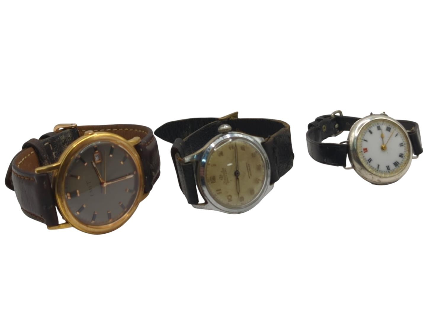 Three gents watches, including silver cased, stainless steel case Reconvilier antimagnetic and Emit quartz