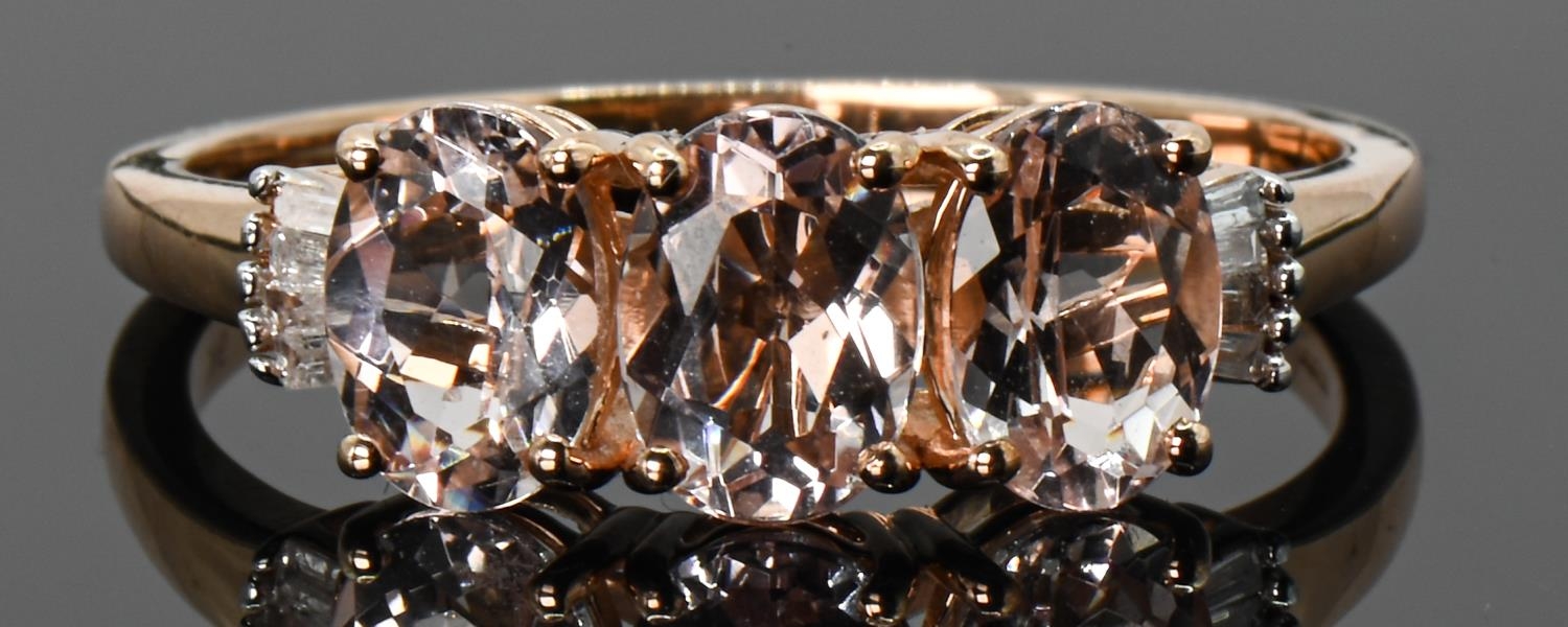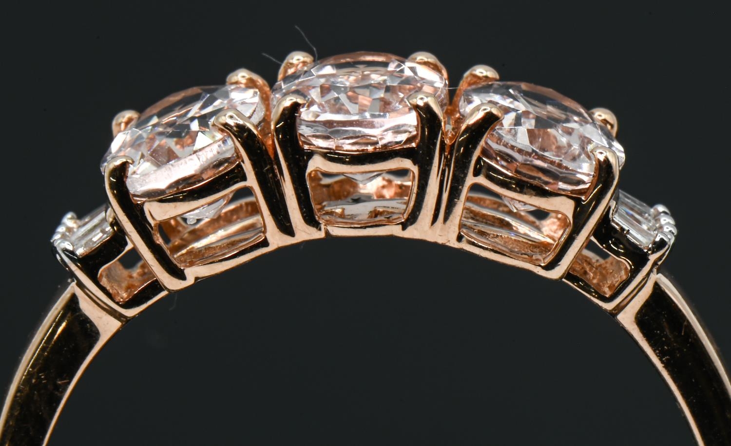9ct rose gold, morganite and diamond ring, hallmarked, size U1/2, gross weight 2.9 grams